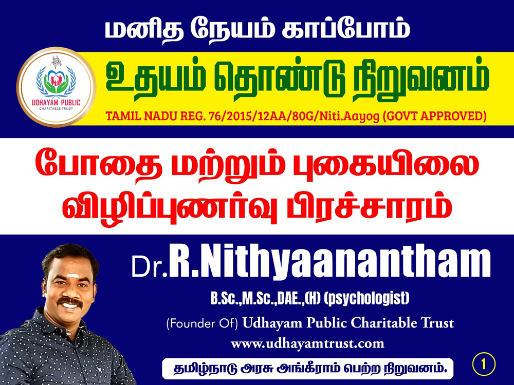 உதயம் குடி மற்றும் போதை மறுவாழ்வு மையம் சார்பாக தாம்பரம் நெடுஞ்சாலையில் வாகன ஓட்டிகளிடம் குடிப்பழக்கத்தால் ஏற்படும் பாதிப்புகளை பற்றியும் அதன் விளைவுகளை பற்றியும் விழிப்புணர்வு பிரச்சாரம் மேற்கொள்ளப்பட்டது.