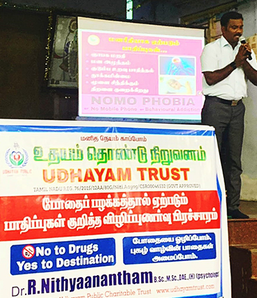 Udhayam trust Founder Dr. Nithyaanantham conducted a workshop on the Topic, Psychological First Aid at the PG Department of Social Work, DG vaishnav College,Arumbakkam