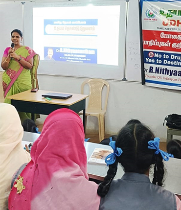 14.02.2023 உதயம் தொண்டு நிறுவனம் சார்பாக SSV அரசு உதவி பெறும் மேல்நிலைப்பள்ளி பூங்கா நகர் வடசென்னை மாணவர்களுக்கும் பெற்றோர்களுக்கும் ஆசிரியர்களுக்கும் போதை பொருட்கள் பயன்படுத்துவதால் ஏற்படும் பாதிப்புகளை பற்றியும் மொபைல் போன் அதிகம் பயன்படுத்துவதால் ஏற்படும் பாதிப்புகளைப் பற்றிய விழிப்புணர்வு பிரச்சாரம் மேற்கொள்ளப்பட்டது நாளைய தலைமுறையை காப்பது நம் கடமை...